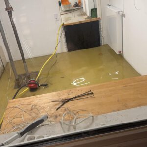 Während des schweren Hochwassers in Borgfeld zu Weihnachten 2023 kam es bei einem unserer Kunden zu einem dramatischen Kanalrückstau. Um die Situation gezielt unter Kontrolle zu bringen, verschlossen wir die Kellerräume wasserdicht, um einen Raum gezielt vollaufen zu lassen, den wir dann schnell abpumpen konnten. Dank dieser strategischen Maßnahme und unserer professionellen Arbeit konnten wir verhindern, dass noch größere Schäden entstanden.